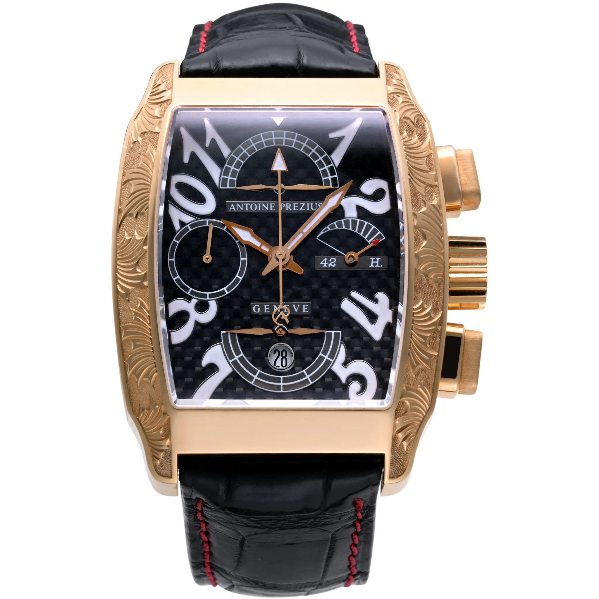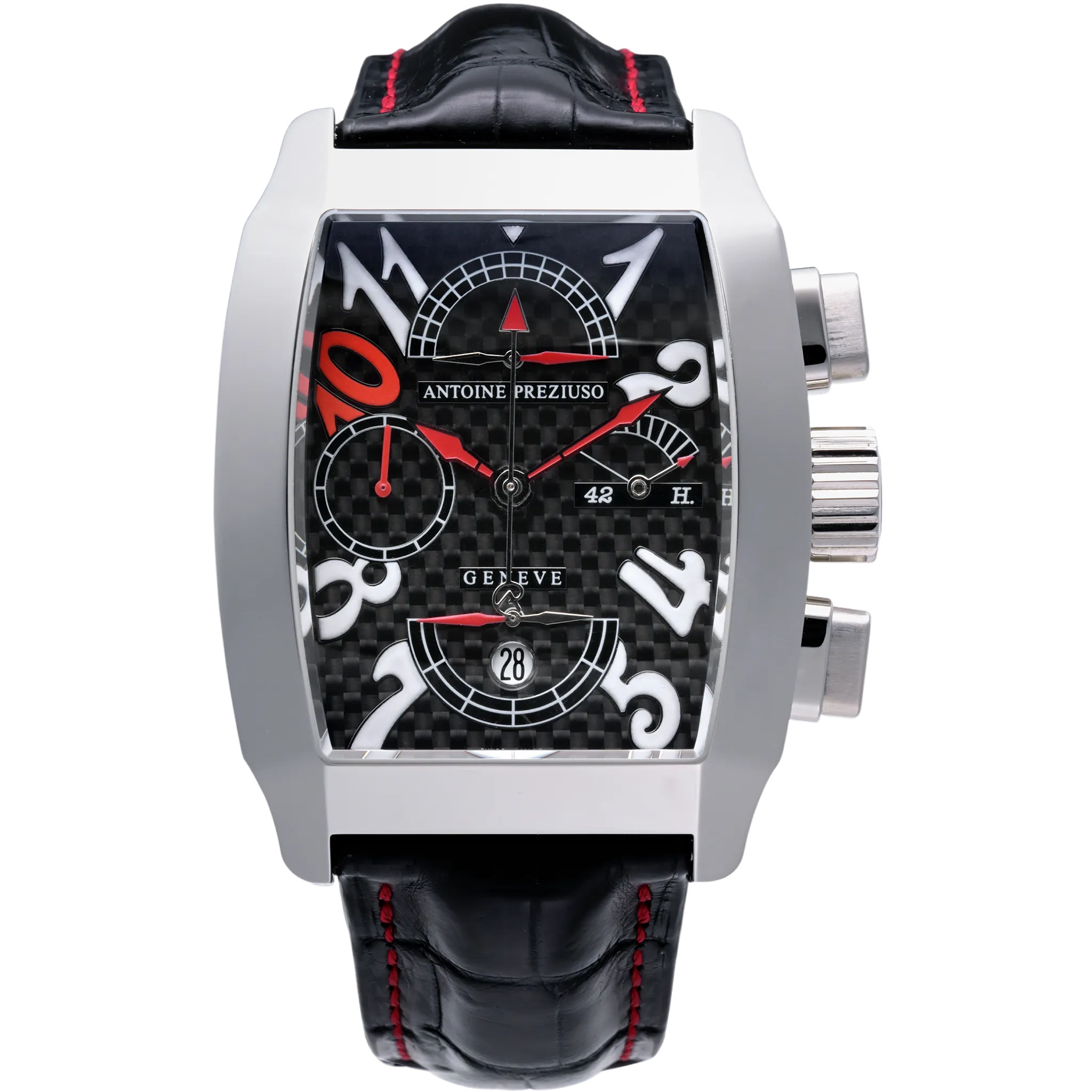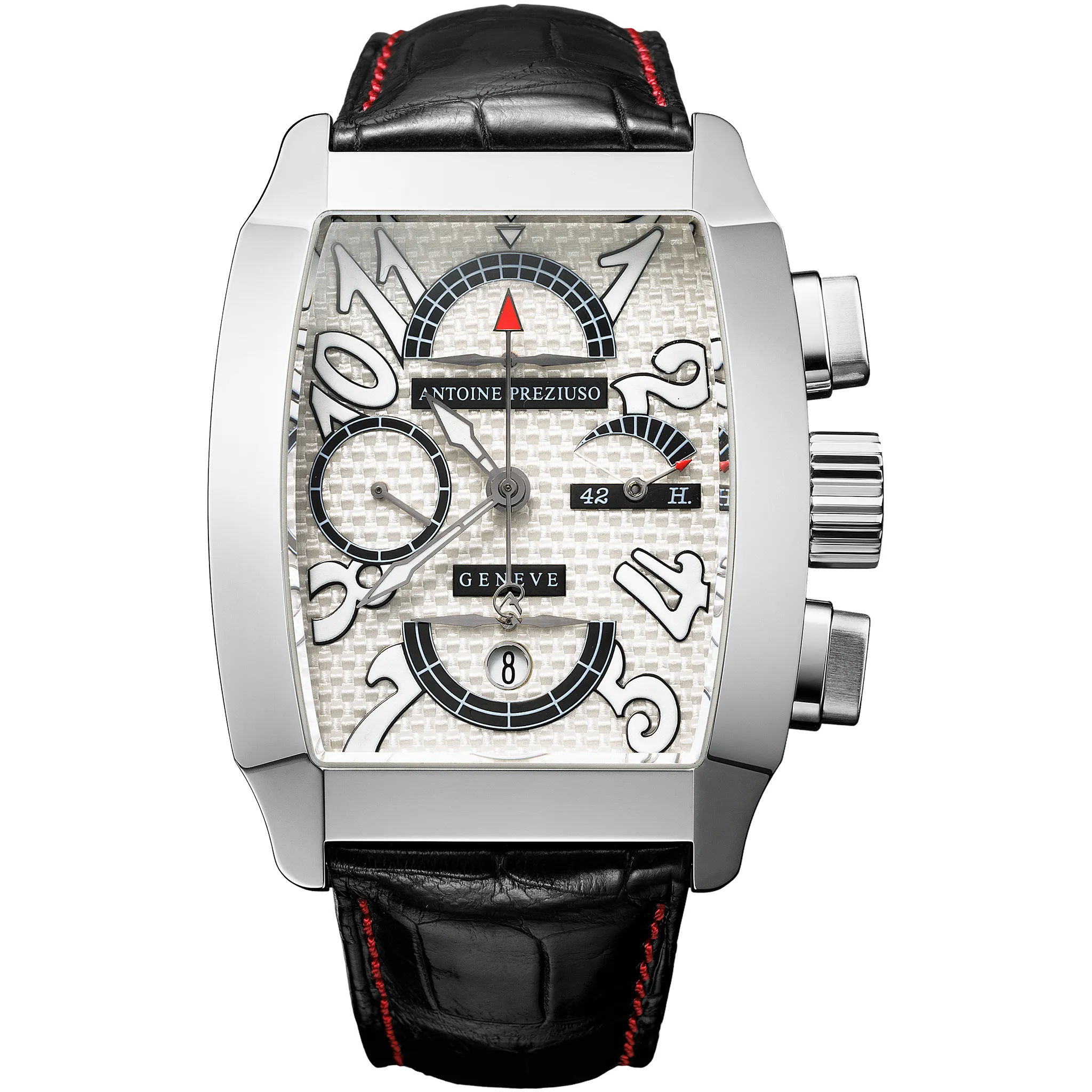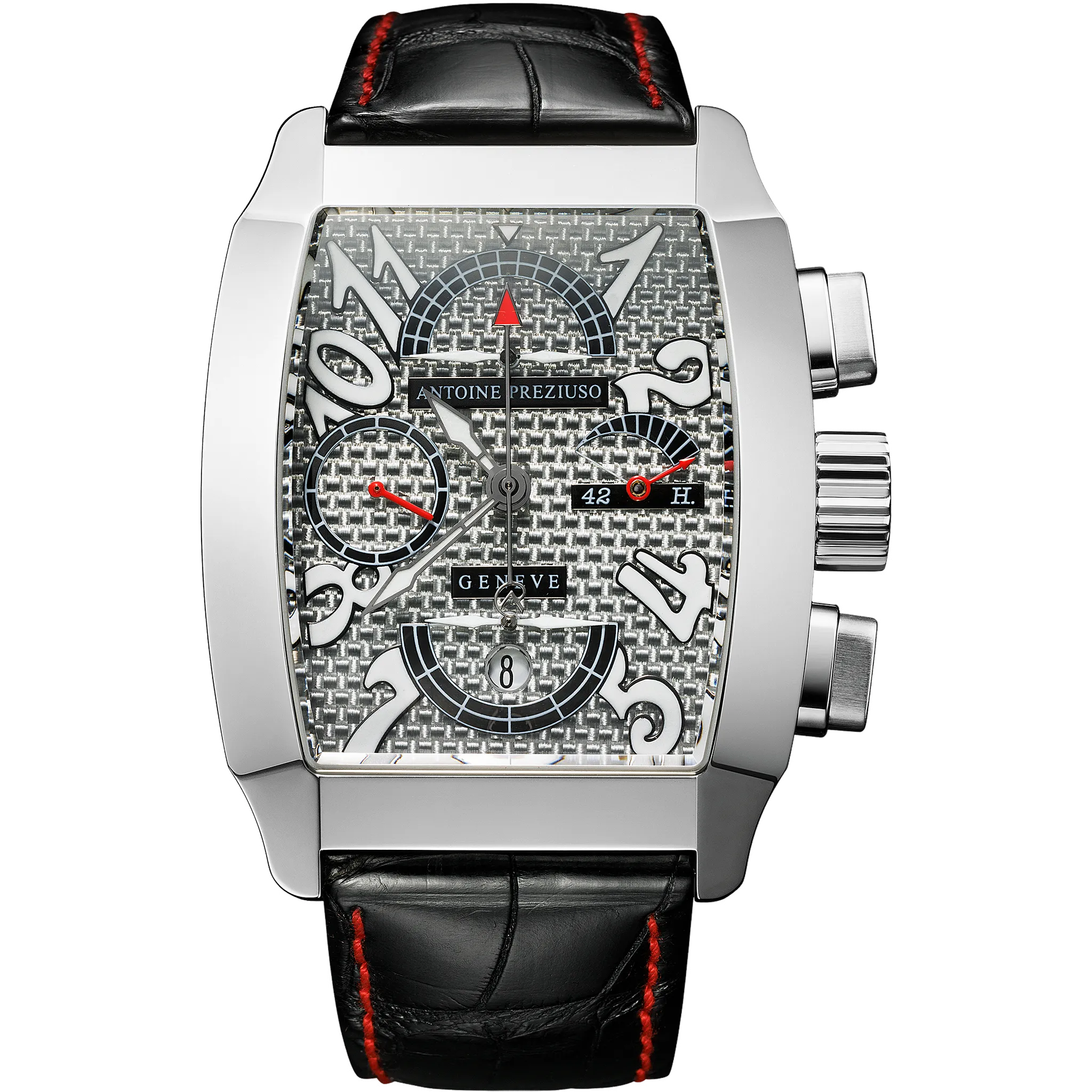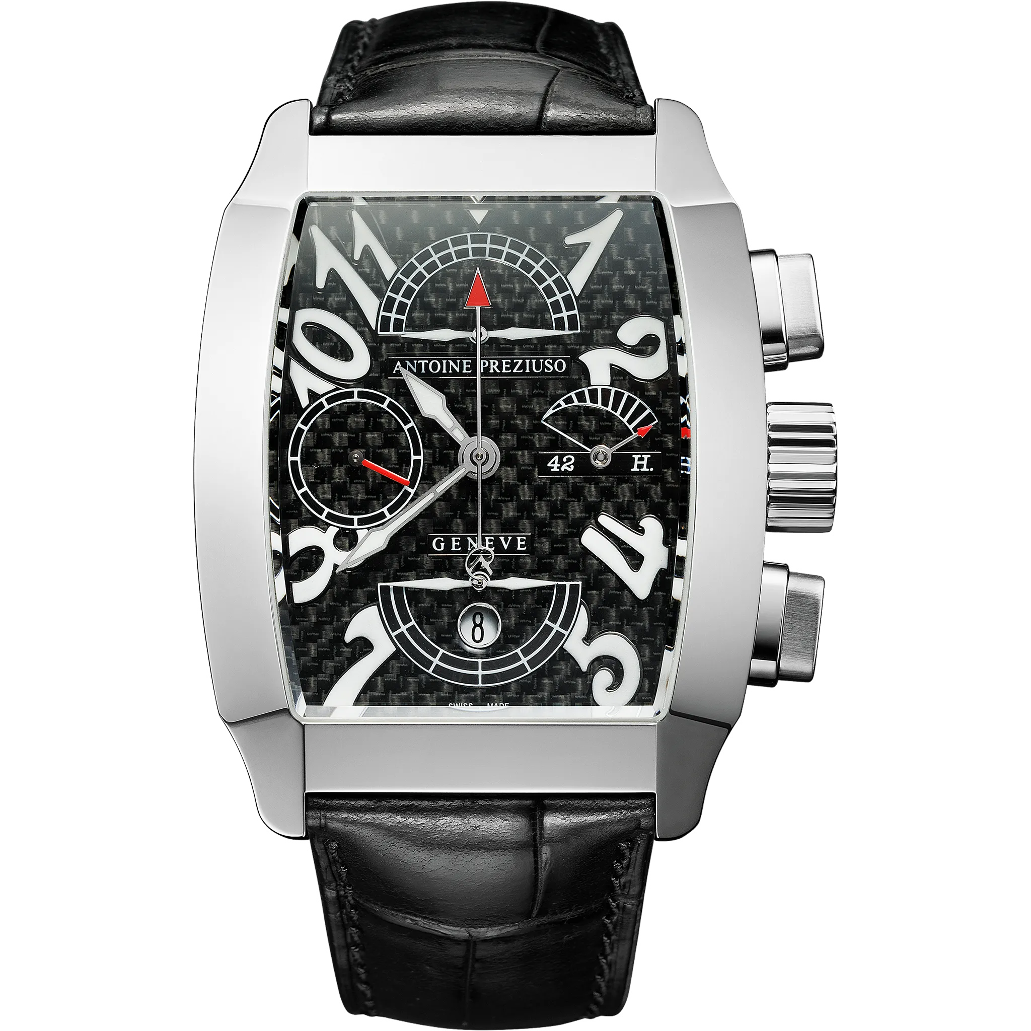 アントワーヌは、趣味のスポーツカーを運転する際の相棒としてこのシリーズを製作。シリーズ名の「ロブスト」とは、ラテン語で「強く、屈強な」を意味し正にそのイメージ通りのデザインに仕上がっています。」「力強さ」と「存在感」を融合させた独創的なクロノグラフウォッチです。